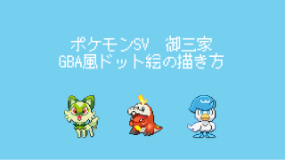 ポケモン風【ポケモンSV】御三家ポケモンドット絵の描き方【スカーレットバイオレット】 ポケモンSV(スカーレットバイオレット)の御三家ポケモンである「ニャオハ、ホゲータ、クワッス」をGBA風のドット絵で描く方法を紹介します。2023.01.08ポケモン風